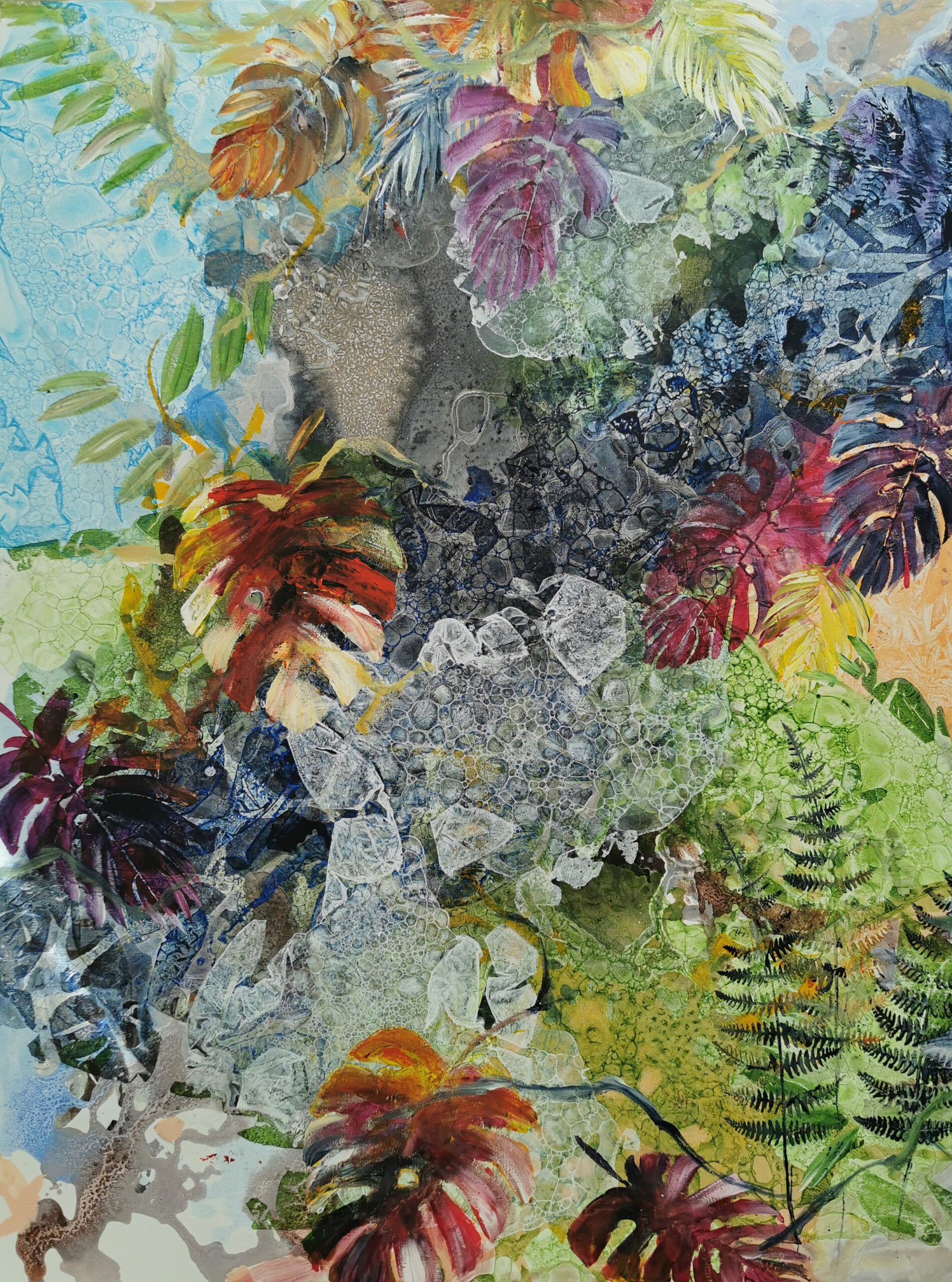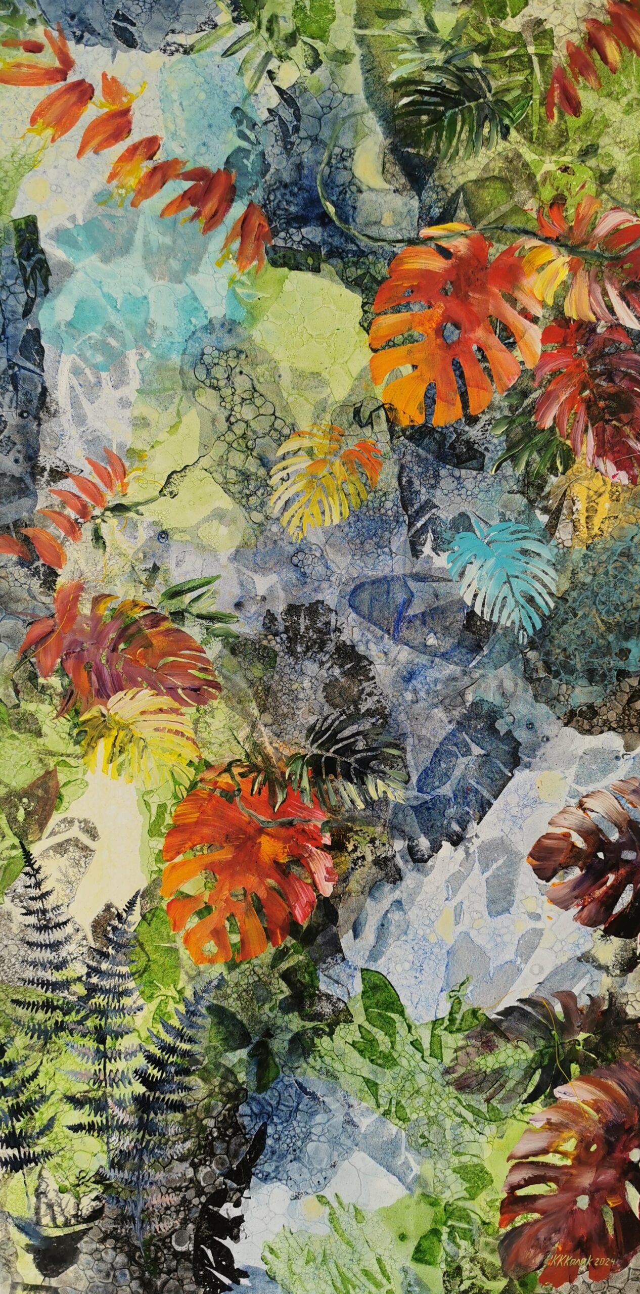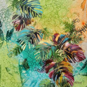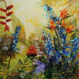 Taimede rütmiline voogamine, värvilised lehed, mis keerlevad õhus kui troopilised liblikad. Siin tantsib valgus värvidega ja iga pintslitõmme toob nähtavale eksootilise maailma, kus iga hetk sünnib midagi uut.